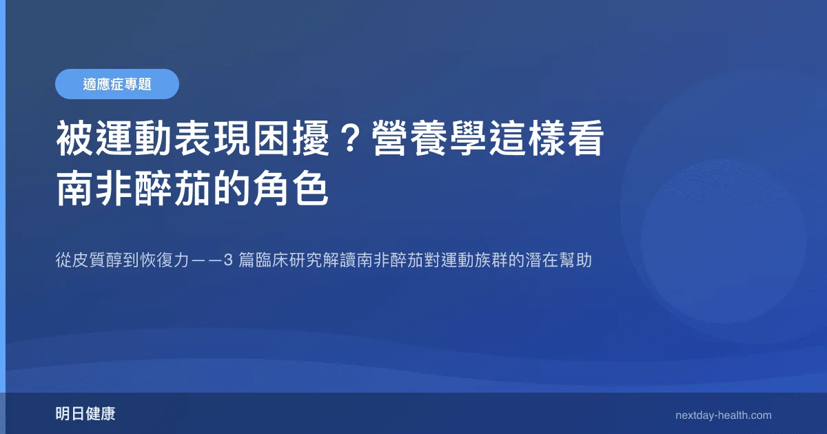 一位 35 歲的業餘馬拉松跑者來諮詢時提到:「每週跑量從 40 公里加到 60 公里之後,不是腿痠的問題,是整個人變得很煩躁、晚上也睡不好。」這其實是典型的壓力荷爾蒙失衡表現——而這正是南非醉茄研究聚焦的核心機制。