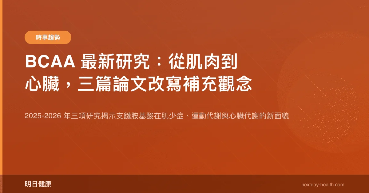 - 年輕男性補充 BCAA 後,運動 20-30 分鐘時脂肪氧化率顯著提升,且力竭測試的騎車效率改善(Luan et al., 2025, PMID: 40219047)