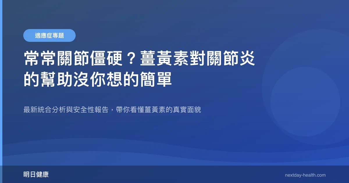 早晨起床,手指僵硬得像生鏽的門軸。你試著握拳,關節傳來一陣悶痛。這樣的場景,對許多關節炎患者來說再熟悉不過。你可能聽過朋友推薦薑黃素,說它「天然抗發炎」。但科學證據真的支持嗎?答案比你想像的複雜。