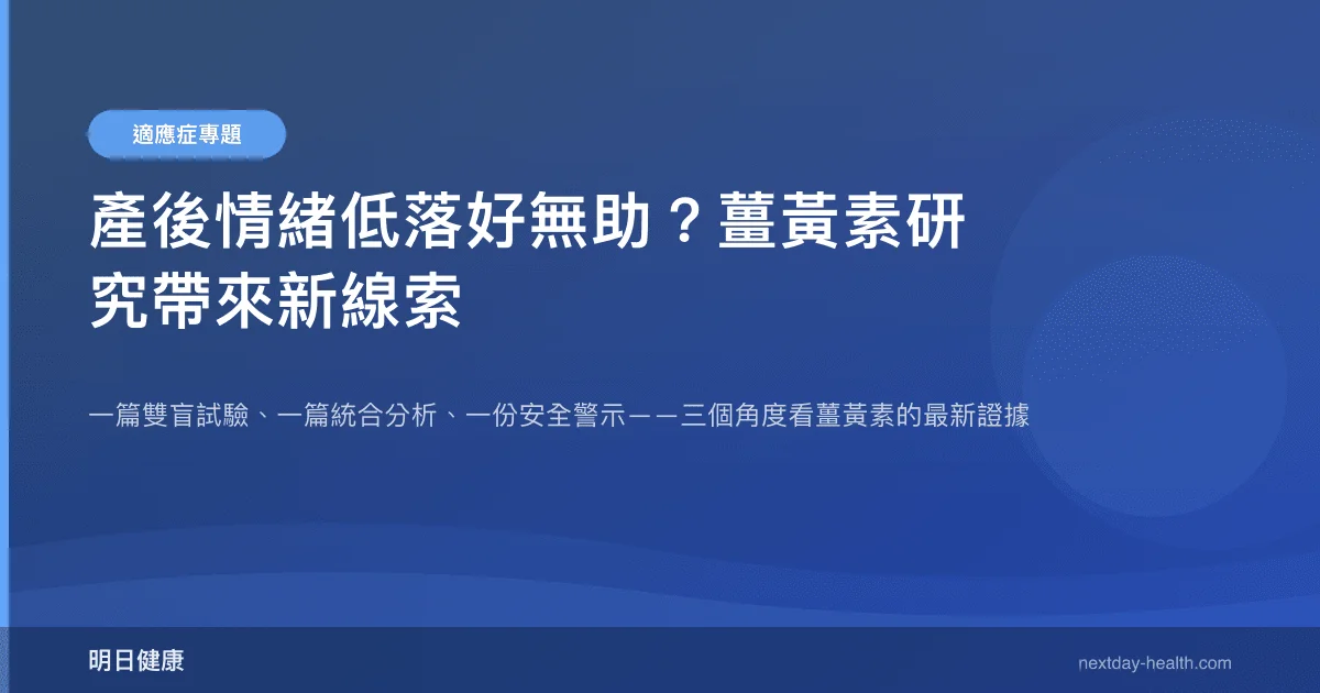 不建議。目前僅有一項雙盲試驗顯示薑黃素對產後情緒有正面影響,證據層級仍屬初步。產後憂鬱是需要專業評估的狀況,如果情緒持續低落超過兩週,請優先諮詢婦產科或精神科醫師,薑黃素最多只能作為輔助參考,不能替代正規治療。