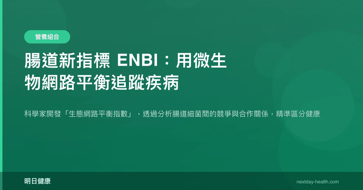 - ENBI(Ecological Network Balance Index)是首個從微生物「互動網路」而非「物種清單」角度評估腸道健康的指標