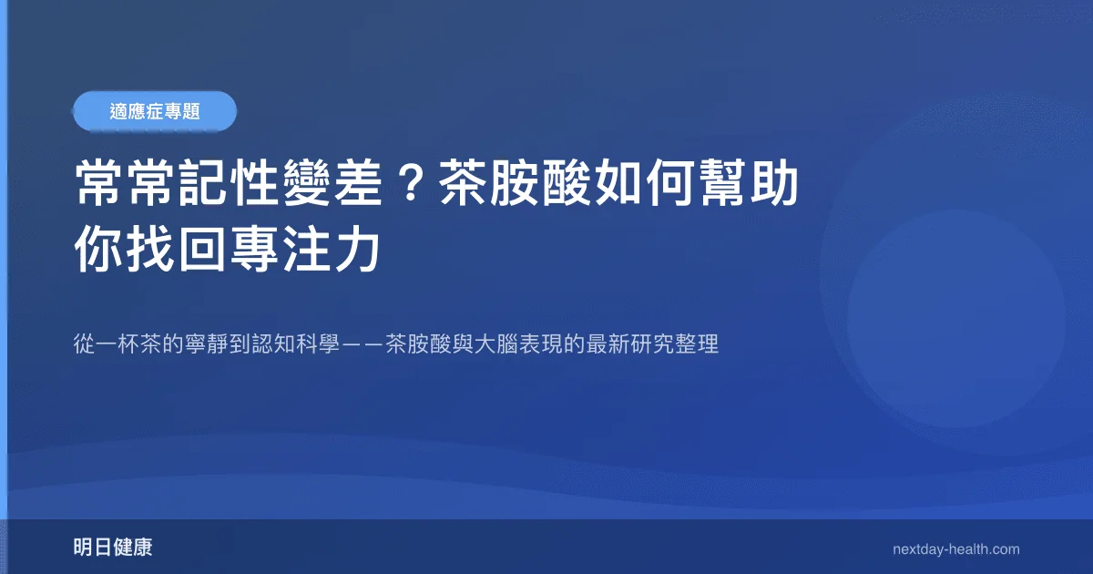 睡眠與認知密不可分。當你因為壓力而睡不好,隔天的記憶力和專注力必然下滑。茶胺酸透過「降低壓力→改善睡眠→提升白天認知」這條間接路徑,形成了一個正向循環。