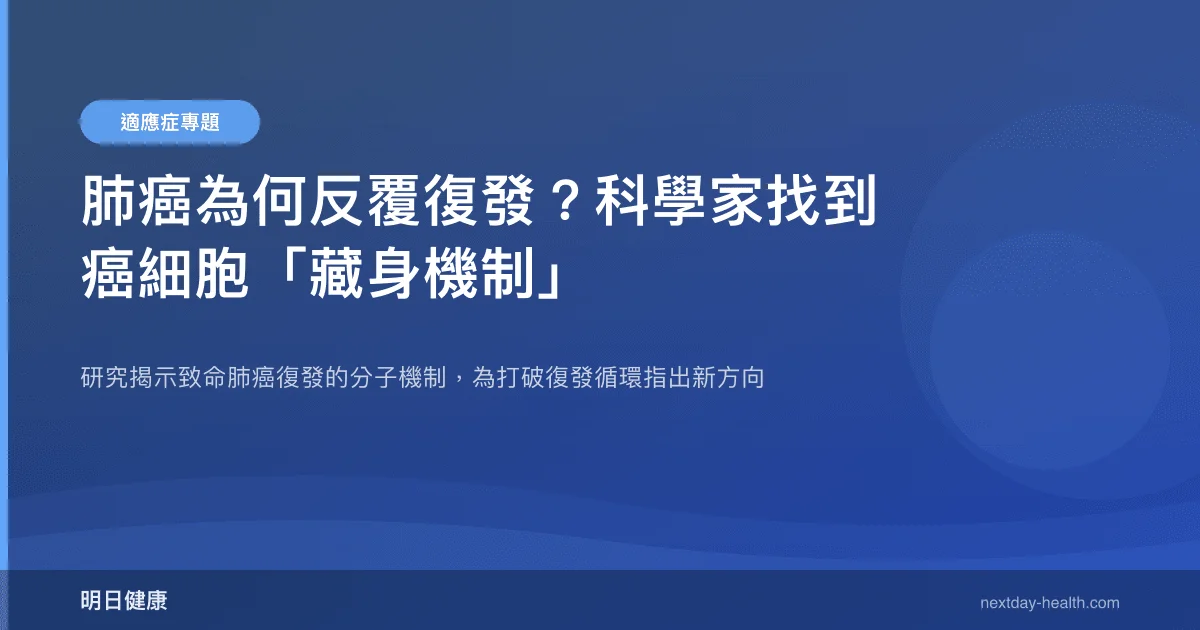 肺癌是全球癌症死亡的首要原因,而復發是存活率難以提升的核心障礙。一項最新研究識別出肺癌細胞逃避治療、潛伏復發的關鍵分子機制,為開發「抗復發」療法提供了重要的標靶線索。