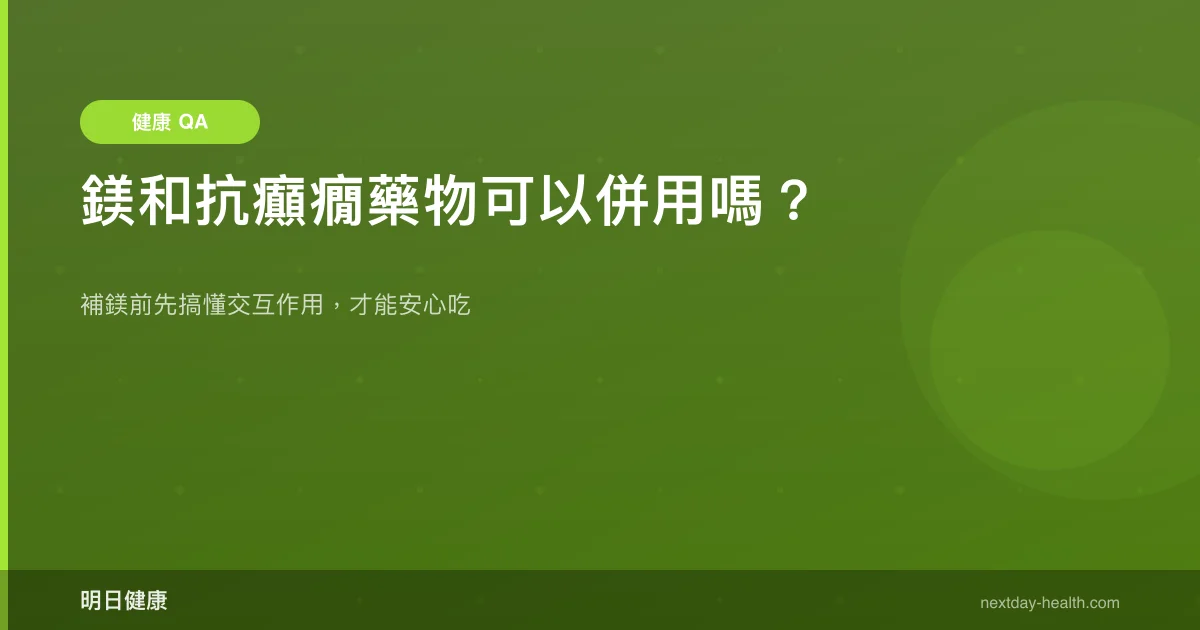- 鎂補充劑與抗癲癇藥物通常可併用,但建議間隔至少 2 小時服用