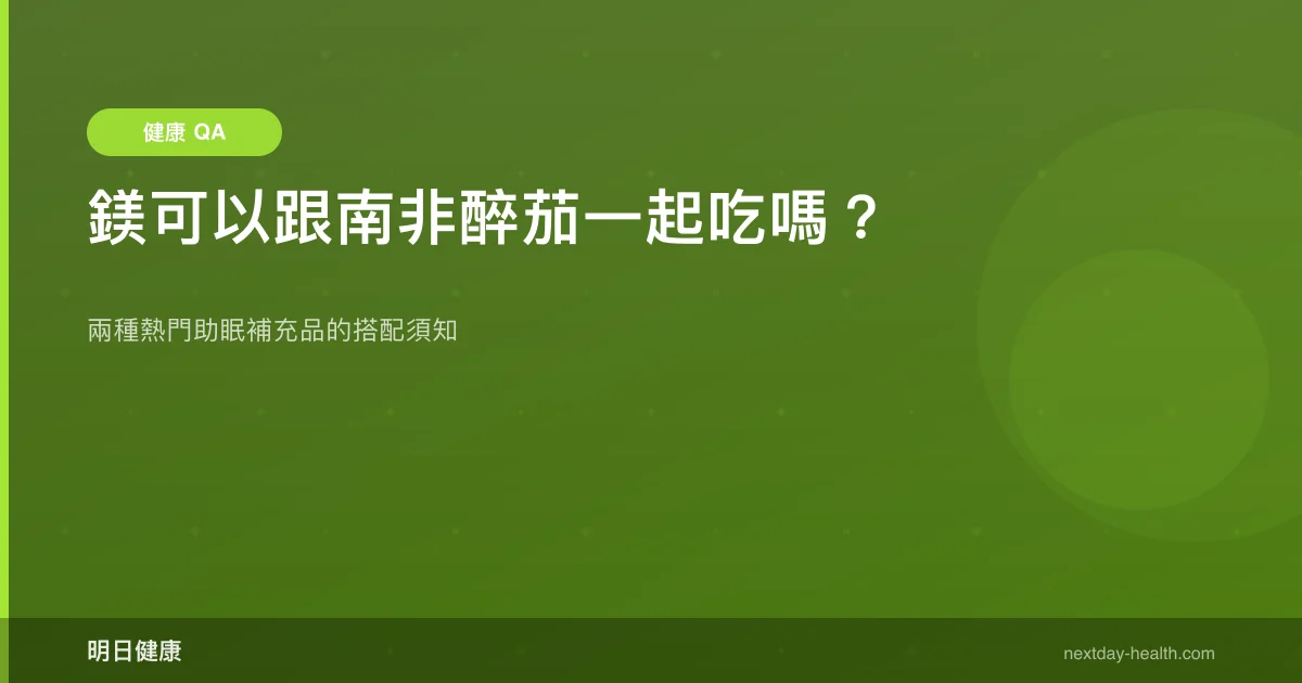 可以,目前沒有已知的藥理交互作用禁止鎂與南非醉茄(Ashwagandha)同時補充。兩者作用機轉不同,許多使用者會搭配服用來支持放鬆與睡眠品質。不過,「可以一起吃」不等於「隨便吃都沒差」,以下幫你快速釐清幾個關鍵問題。