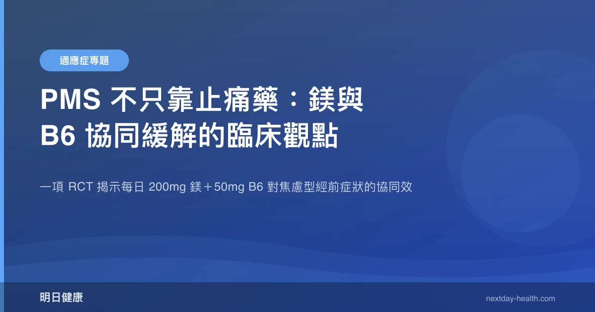 鎂和 B6 對神經系統的支持作用並不限於 PMS 情境。但本文引用的臨床證據是針對育齡女性的經前症狀,因此不宜直接外推到其他族群。如果你對鎂的其他健康效益感興趣,建議參考針對該特定情境的研究。
