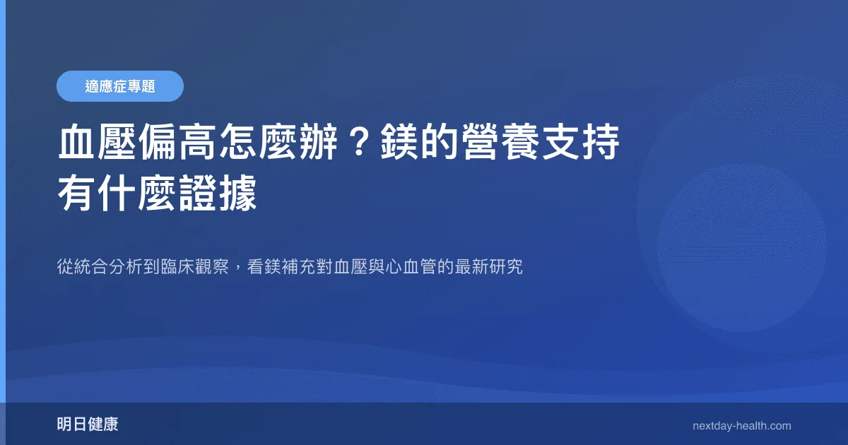 2025 年的統合分析為鎂與血壓的關聯提供了更強的證據支持,但從「有幫助」到「正式寫入指引」之間,還需要更多設計嚴謹的大型試驗。如果你有血壓方面的困擾,建議諮詢醫師,討論是否需要檢測血清鎂濃度或調整飲食。