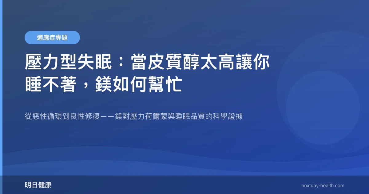 更麻煩的是,睡不好本身又會進一步推高隔天的皮質醇,形成「壓力→失眠→更大壓力」的惡性循環。要打破這個循環,除了壓力管理技巧之外,近年研究開始關注一個常被忽略的營養素——鎂。