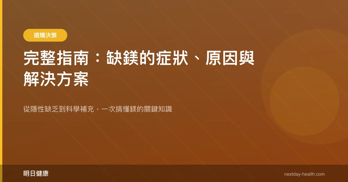 鎂的定義:鎂是人體必需的巨量礦物質,參與超過 300 種酶促反應,包括能量代謝、蛋白質合成、肌肉與神經功能調節,以及血糖與血壓控制。