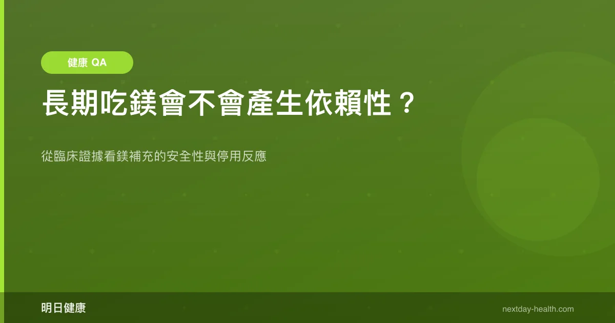 不會。鎂是人體必需礦物質,長期補充不會產生藥理學上的依賴性或成癮性。臨床研究顯示,停止補充後效果會逐漸消退,但不會出現戒斷症狀——這恰恰說明鎂的效果來自補足身體所需,而非改變大腦獎賞迴路。