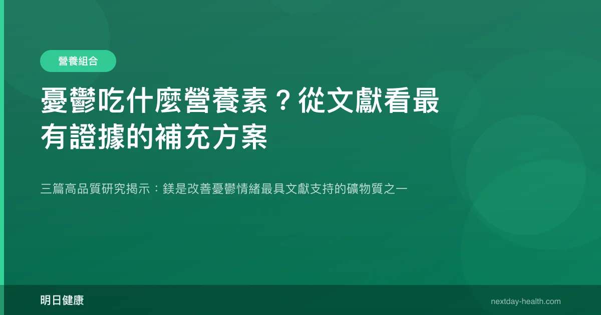 - 統合分析證實鎂補充可顯著改善憂鬱量表分數,輕至中度憂鬱效果最明顯