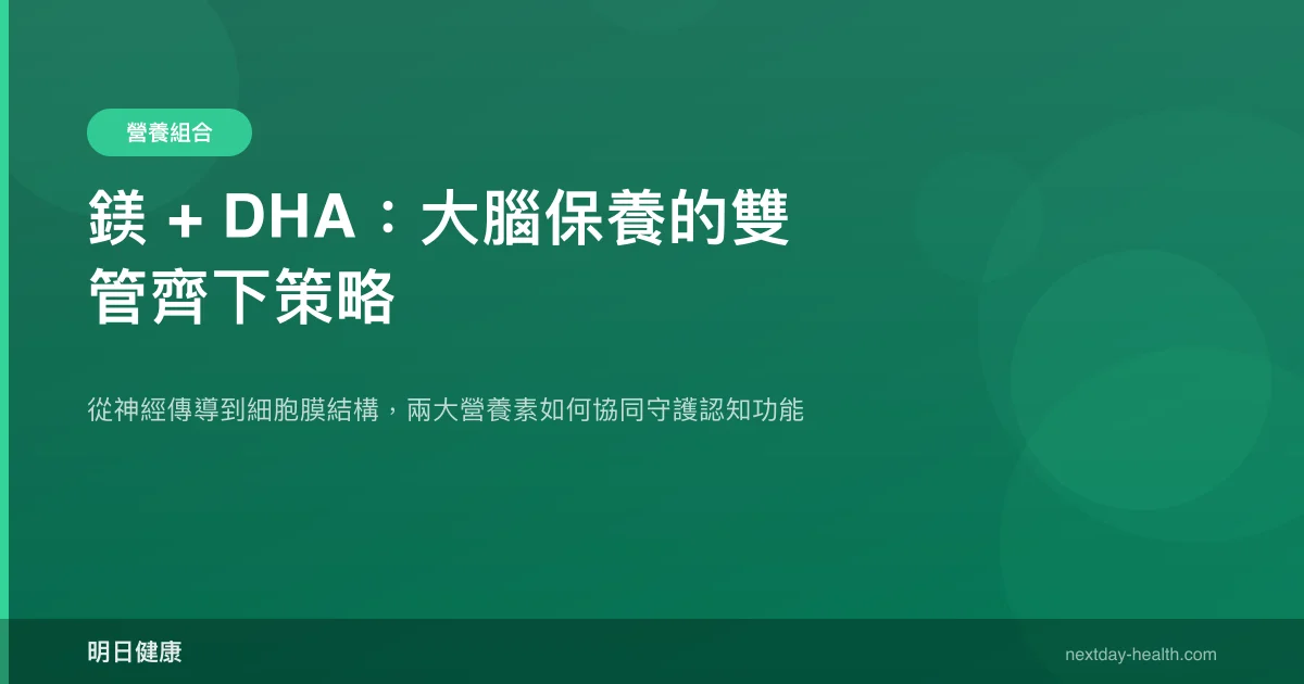鎂參與人體超過 300 種酵素反應,是維持神經訊號傳導的核心礦物質;DHA 則是大腦灰質中含量最豐富的 omega-3 脂肪酸。當這兩種營養素同時充足攝取時,它們分別從「訊號傳導」與「細胞膜結構」兩個層面支持腦部健康,形成互補的保養策略。本文整理現有文獻,探討鎂與 DHA 的個別機制及搭配邏輯。