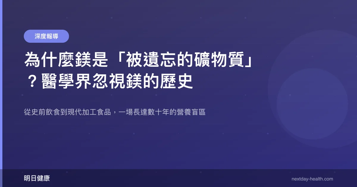 這篇深度報導將追溯鎂被忽視的歷史脈絡,剖析制度性盲點如何讓這個關鍵營養素從臨床視野中消失,以及為什麼現在是重新正視鎂的時候。