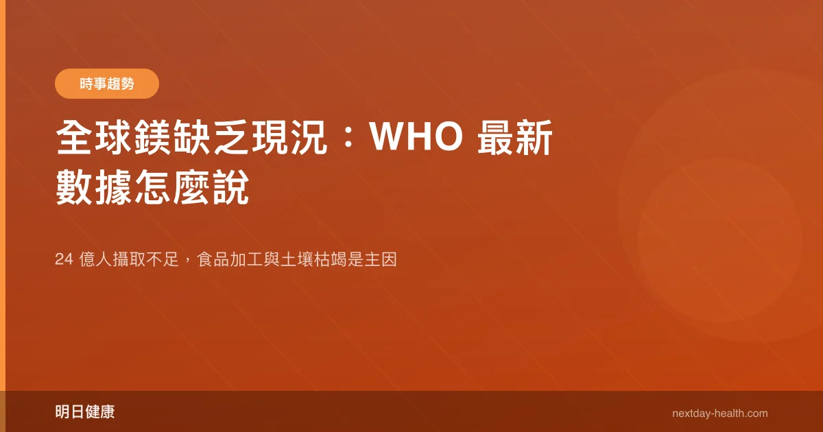 - 全球約 31% 人口(約 24 億人)鎂攝取未達建議量