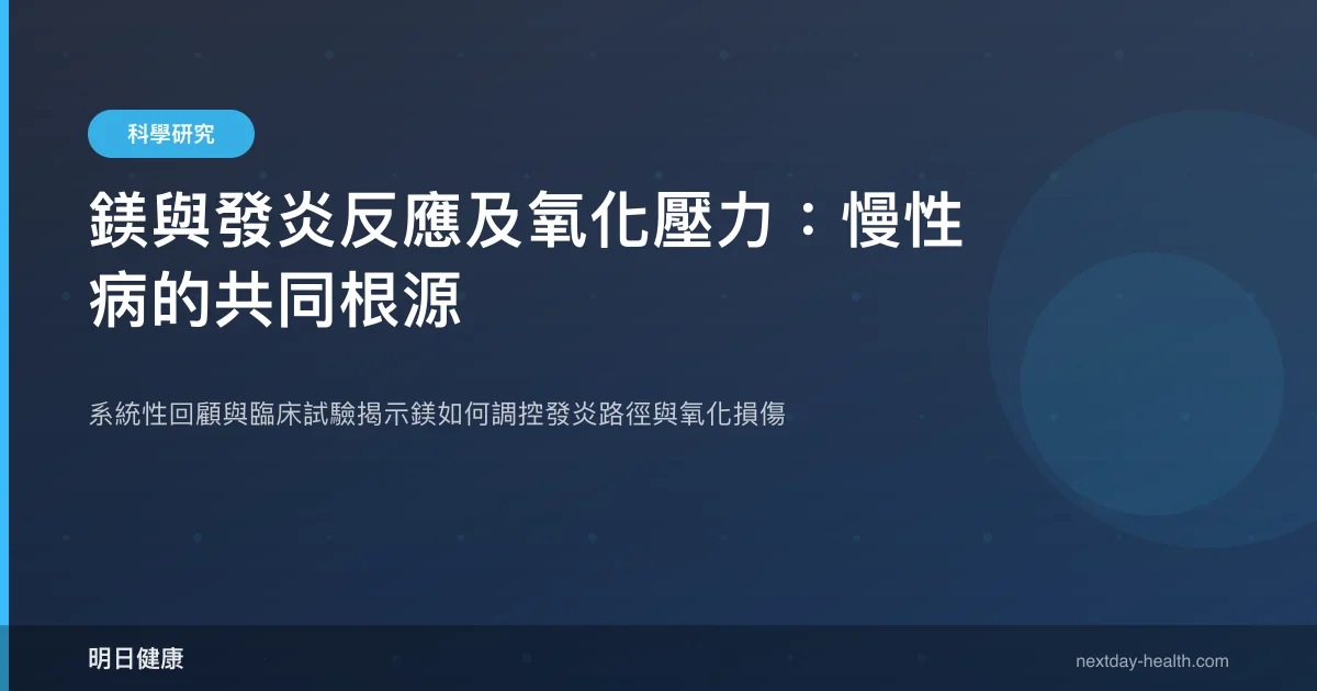 - 統合分析證實:補充鎂可顯著降低 CRP(C 反應蛋白)水平,支持其抗發炎潛力