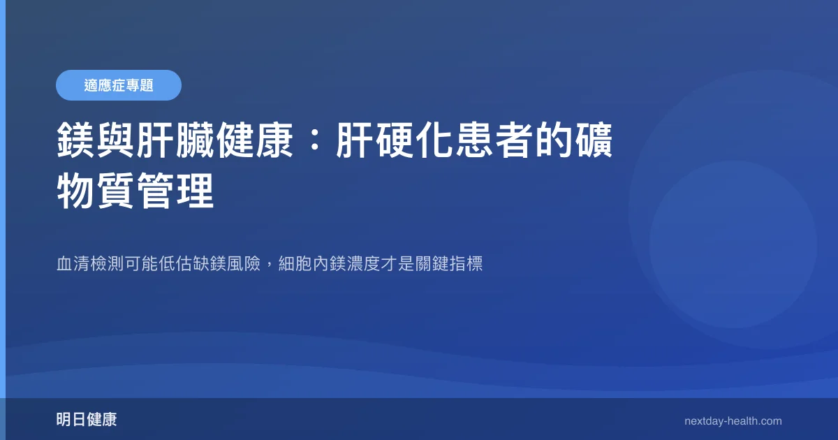 這個發現具有重要的臨床意義。人體內約 99% 的鎂分布在骨骼、肌肉和軟組織中,血清中僅含約 1%。因此,血清鎂正常並不代表身體的鎂儲備充足。對肝硬化患者而言,若僅依賴血清檢測來判斷是否缺鎂,可能有大量患者被遺漏。這也是為什麼部分臨床專家開始建議,在高風險族群中應考慮採用紅血球鎂濃度等更敏感的檢測方式。