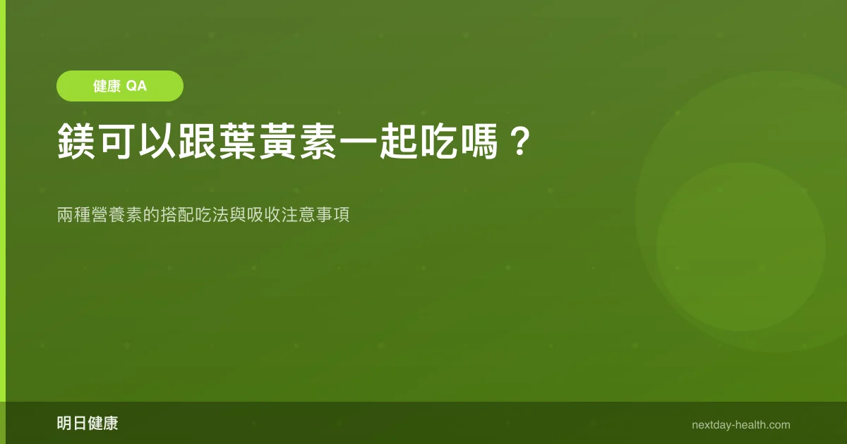 大多數人不需要刻意分開。但如果你同時補充高劑量鈣片,研究提醒高鈣攝取可能與鎂競爭吸收位點(Rondón, 2026)。這種情況下,可以考慮把鈣片和鎂錠錯開 2 小時服用,葉黃素則不受影響,哪一餐吃都行。