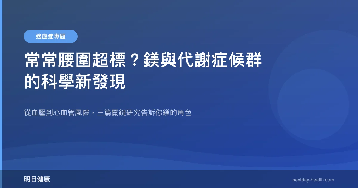 下午三點,你坐在辦公桌前,褲腰有點緊,上次健檢報告上的紅字還沒處理——腰圍超標、血壓偏高、空腹血糖在邊緣。這些指標湊在一起,醫師可能會提到一個詞:代謝症候群。你大概知道要少吃多動,但有一個常被忽略的營養素,近年在研究圈引起不少討論,那就是鎂。