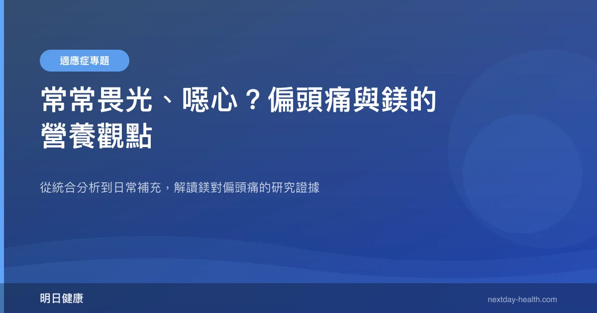 - 美國神經學會將鎂列為偏頭痛預防的「可能有效」輔助療法