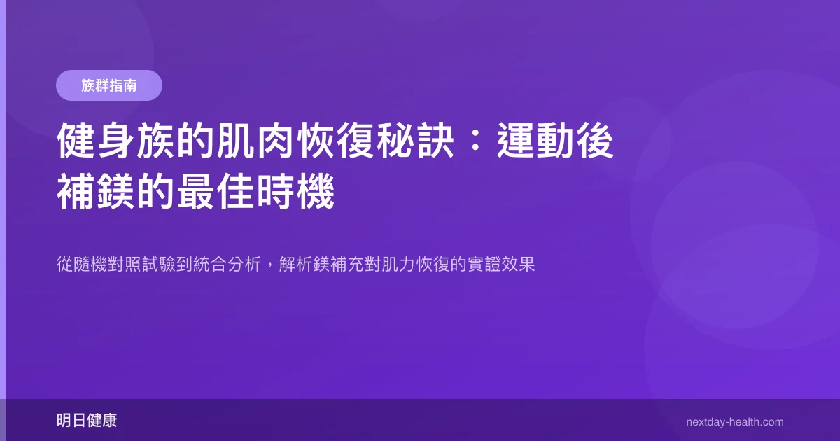 鎂補充可顯著改善肌肉力量指標,但補充時機與持續時間會產生截然不同的效果——急性補充使臥推表現提升 7.7%,而慢性補充在恢復期的表現反而下降。對於認真訓練的健身族來說,理解這個差異,可能是突破瓶頸的關鍵。
