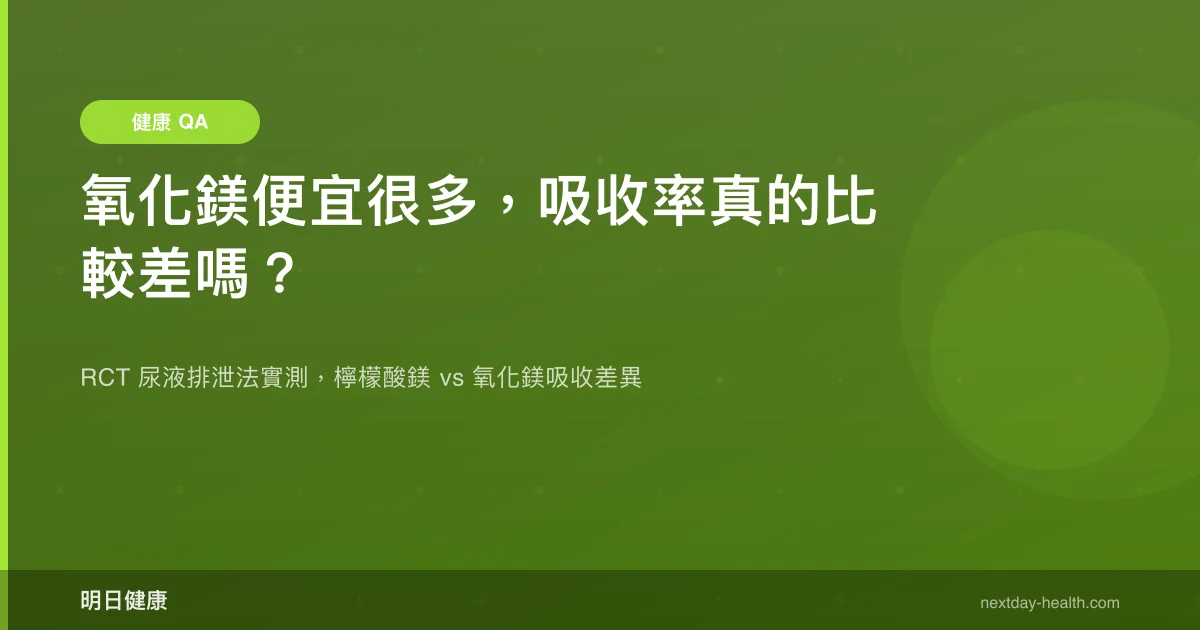 氧化鎂通常便宜 30-50%,因為製程簡單、原料成本低。但考慮到吸收率差異,實際「被身體用到的鎂」換算下來,價差會縮小很多。