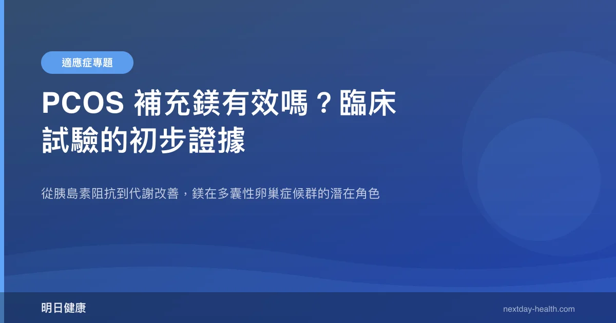 一項 2024 年隨機對照試驗發現,PCOS 女性補充鎂後,胰島素阻抗指數(HOMA-IR)顯著改善(p=0.032),為鎂與多囊性卵巢症候群的關聯提供了初步臨床證據。多囊性卵巢症候群(PCOS)是育齡女性最常見的內分泌疾病之一,影響全球約 6-12% 的女性,而胰島素阻抗正是其核心病理機制。近年來,營養補充介入逐漸受到研究者關注,鎂作為參與超過 300 種酶反應的必需礦物質,其在代謝調控中的角色尤其值得探討。