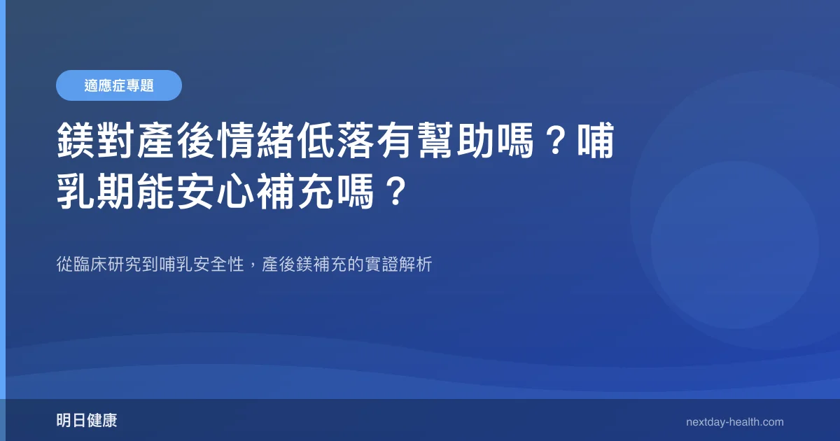 產後情緒低落影響約 50-80% 的新手媽媽,而系統性回顧研究發現,鎂補充能顯著改善憂鬱量表分數,最快 2 週即可感受到變化。身為婦產科與身心科的臨床工作者,我經常在門診遇到產後媽媽問:「醫師,我心情很差,但又在餵母奶,到底能不能吃鎂?」今天就用研究證據來回答這個問題。