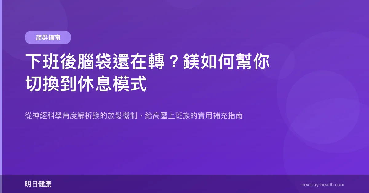 研究顯示,鎂能透過降低神經系統興奮性與調節壓力荷爾蒙,幫助大腦從工作模式切換到休息狀態。如果你常常下班後腦袋還停不下來、躺在床上反覆想著白天的事,問題可能不只是「想太多」,而是身體缺少了一個關鍵的煞車機制。