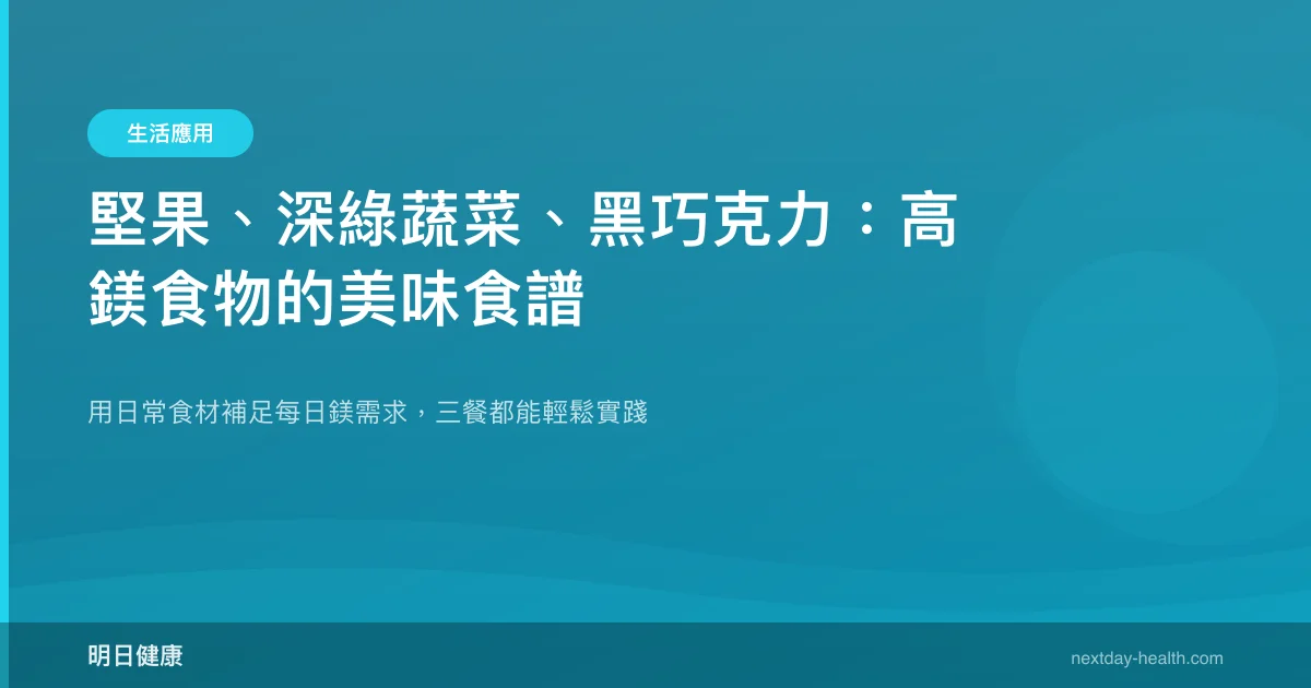 全球約 31% 的人口未達建議鎂攝取量,而台灣國民營養調查同樣顯示多數成人鎂攝取不足。好消息是,堅果、深綠色蔬菜與黑巧克力這三大類天然食物富含鎂,只要懂得搭配入菜,每天的餐桌就能成為最好的補鎂來源。本文整理實用食譜與搭配原則,讓高鎂飲食不再只是營養建議,而是真正端上桌的美味。