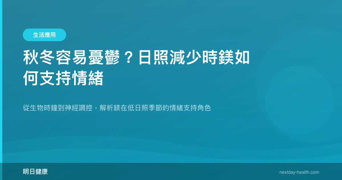 每年秋冬日照縮短,不少人會感到情緒低落、提不起勁,這並非只是「想太多」。統合分析顯示,膳食鎂攝取量最高的族群,憂鬱症風險比最低者降低約 19%(RR = 0.81),而鎂恰好在日照減少時扮演關鍵的神經調控角色。這篇文章將從科學證據出發,帶你了解鎂如何在秋冬幫助穩定情緒。