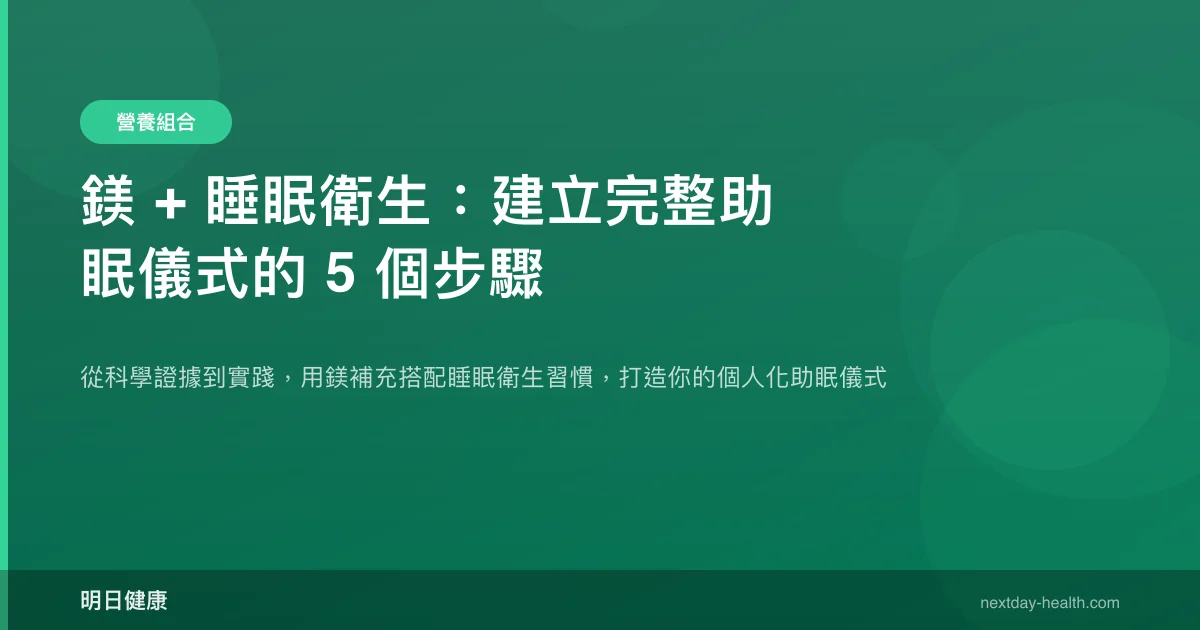鎂補充搭配睡眠衛生習慣,可能幫助縮短入睡時間約 17 分鐘,為失眠者提供一條天然的改善路徑。一篇 2021 年發表於《BMC Complementary Medicine and Therapies》的統合分析指出,鎂對老年人的入睡潛伏期有顯著縮短效果,而 2025 年《Nature and Science of Sleep》的回顧研究進一步揭示了鎂改善睡眠的多重生理機制。然而,單靠補充鎂並不足夠——將鎂融入完整的睡眠衛生儀式,才能發揮最大的協同效益。