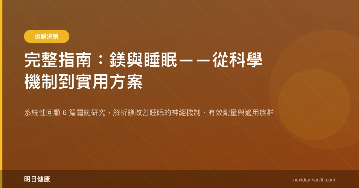 定義:鎂(Magnesium)是人體必需的礦物質,參與超過 300 種酵素反應,其中包括調節神經傳導物質 GABA 的活性,直接影響睡眠品質與入睡速度。