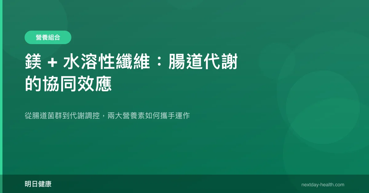 鎂與水溶性纖維的組合,正成為營養學界探討腸道代謝健康的焦點之一。一篇刊登於《Nutrients》的系統性回顧指出,鎂缺乏在肥胖與代謝症候群患者中普遍存在,且鎂對腸道菌群組成具有正面影響,間接支持整體代謝功能(Piuri et al., 2021)。當鎂與水溶性纖維同時攝取,兩者可能在腸道環境中產生互補的代謝調控作用。