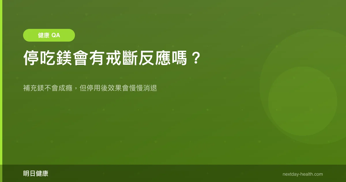 如果你補鎂期間睡眠有改善,停吃後可能回到原本的睡眠狀態,但這不是戒斷反應,而是鎂的輔助效果消失了。