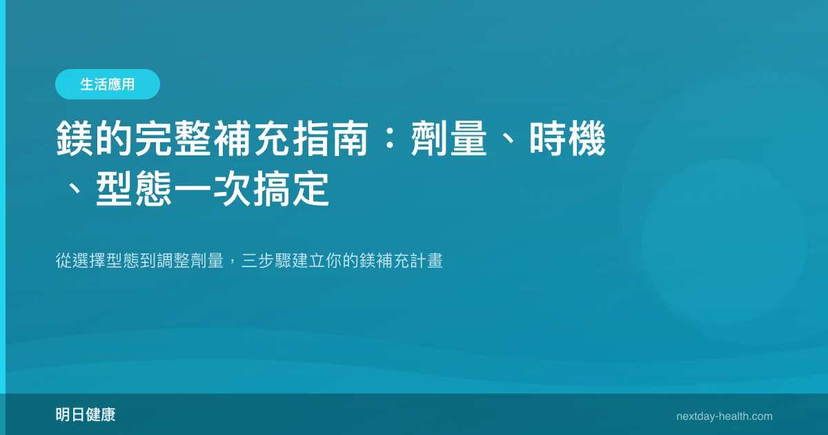 你是否經常半夜小腿抽筋、眼皮跳個不停,或者總覺得疲倦卻找不到原因?這些看似不相關的困擾,可能都指向同一個營養素——鎂。鎂參與人體超過 600 種酵素反應,從能量代謝到神經傳導都離不開它,但研究顯示多數人的日常飲食攝取量並未達到建議標準。想補鎂,卻被市面上琳瑯滿目的產品搞得頭昏?這篇指南用三個步驟,幫你搞定劑量、時機與型態的所有問題。