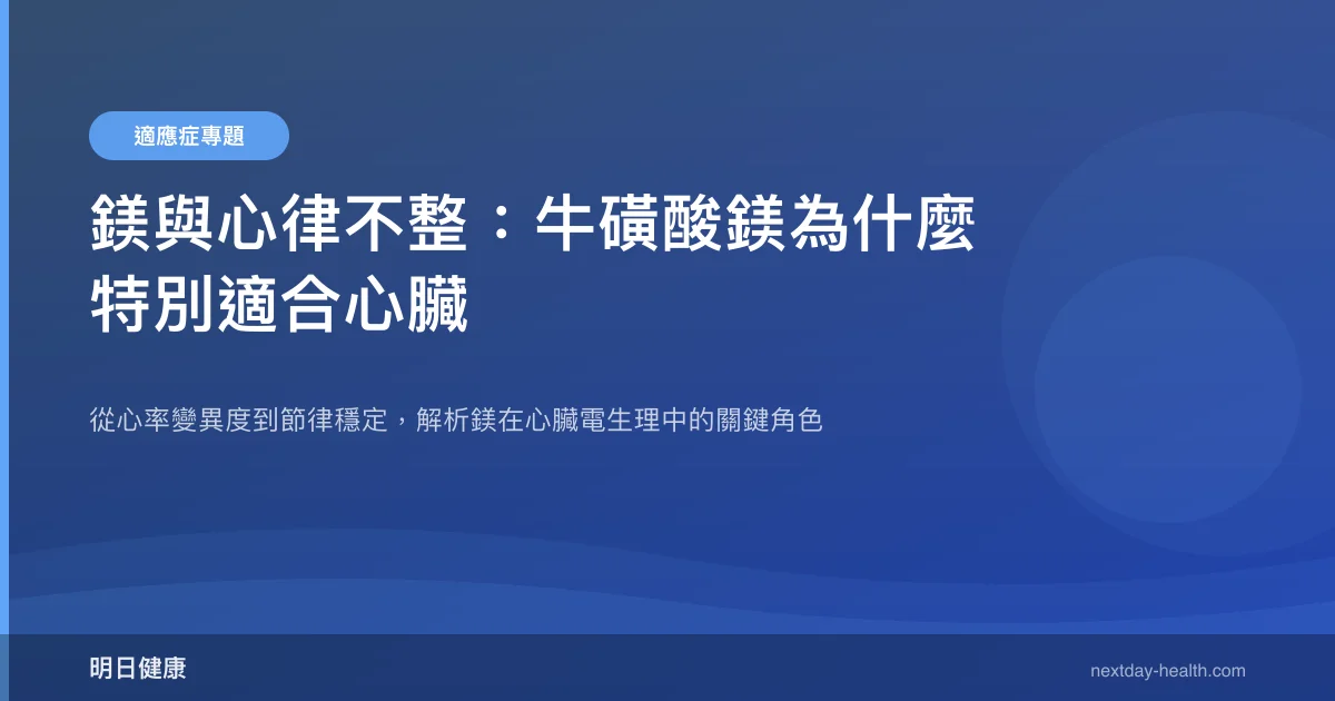 當然,這只是個案經驗,不能直接推論因果——陳先生同時也在調整生活型態。但從機轉上來看,鎂穩定心肌電位、牛磺酸調節鈣離子通道,兩者的協同作用確實在心臟電生理層面有合理的解釋基礎。