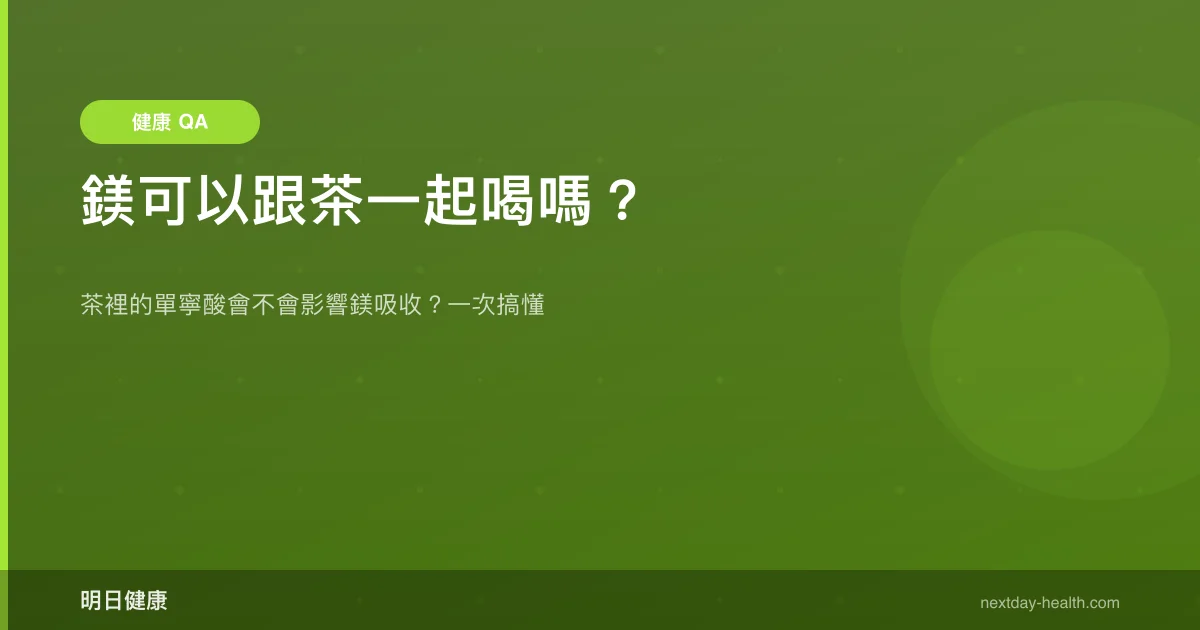 - 建議鎂補充劑與茶飲間隔至少 30 分鐘,理想 1-2 小時