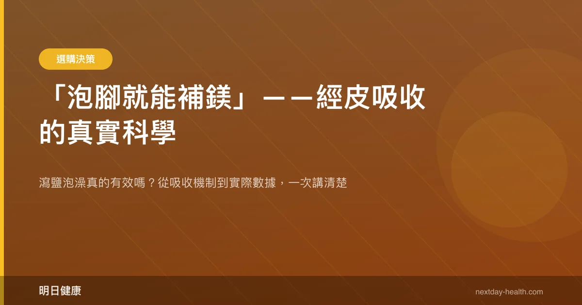 直球回答:目前沒有高品質臨床證據支持「泡腳能有效補充體內鎂含量」。皮膚的角質層是一道強大屏障,鎂離子要穿透它進入血液循環,難度遠比你想的高。