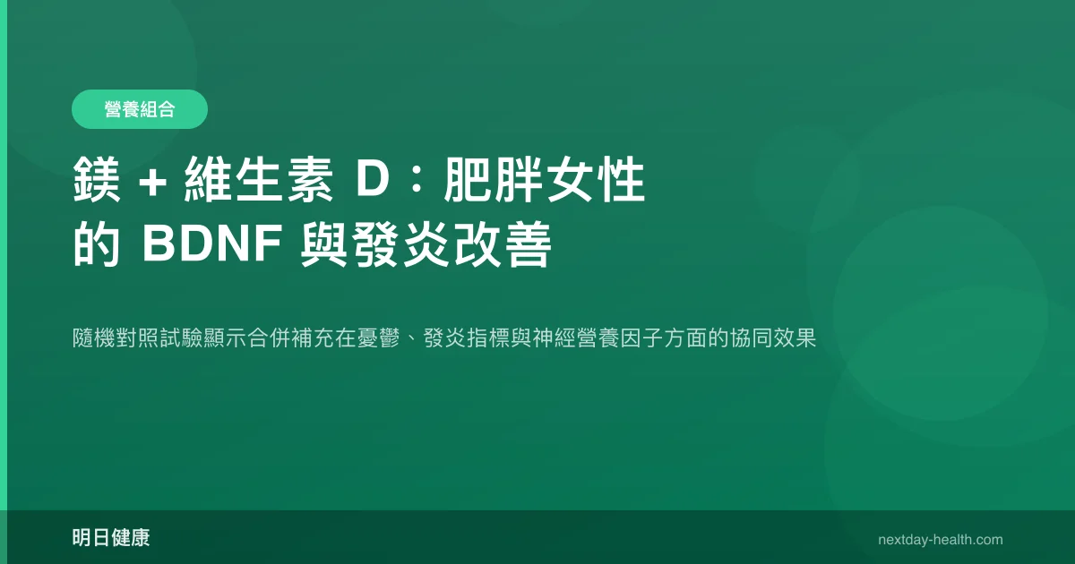 一項隨機對照試驗發現,肥胖女性同時補充鎂與維生素 D,其憂鬱症狀改善幅度顯著優於單獨補充任一營養素,且血清 BDNF 濃度與發炎指標均出現有利變化(Abiri et al., 2022)。這項研究為「營養素協同作用」提供了臨床等級的實證,也揭示了代謝健康與心理健康之間的雙向關聯。