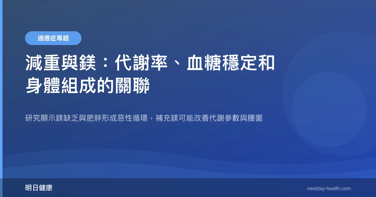 全球超過半數的肥胖與代謝症候群患者存在鎂攝取不足的問題,而這種礦物質缺乏可能正在拖慢你的減重進度。一篇發表於《Nutrients》的綜述指出,鎂缺乏與肥胖之間存在雙向惡性循環——體重過重加速鎂流失,鎂不足又進一步損害代謝功能(Piuri et al., 2021)。理解這層關聯,或許能為體重管理打開新的思路。