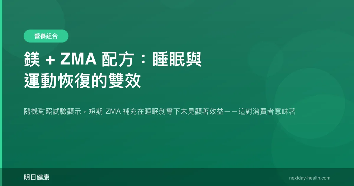 - 2024 年 RCT 顯示,短期 ZMA 補充在連續兩晚睡眠剝奪下,對睡眠品質與運動表現均無顯著改善