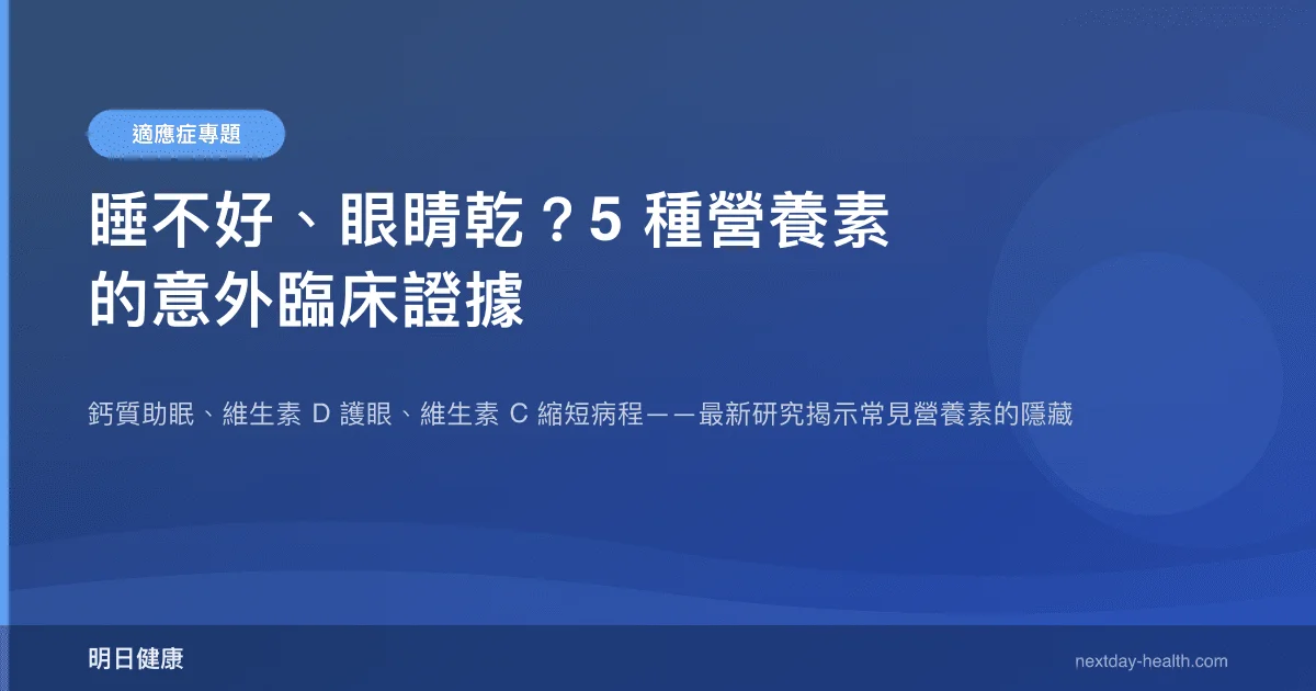 | 鈣 + 維生素 D | 改善睡眠品質 | RCT(事後分析) | B | PSQI 總分顯著改善 |