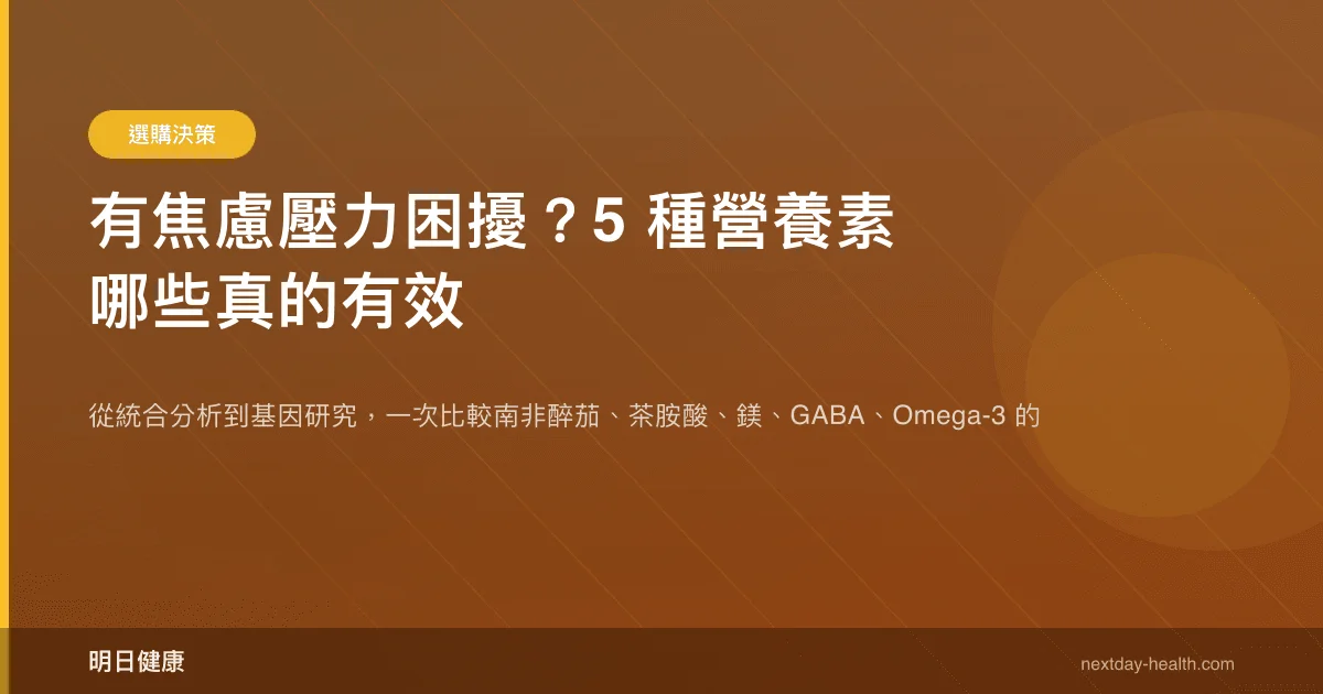國際營養精神醫學學會(ISNPR)的臨床指引中,Omega-3(特別是 EPA)被列為憂鬱症輔助治療的正面推薦選項。南非醉茄在印度傳統醫學中使用數千年,近年統合分析逐步建立其抗壓證據基礎。但學界普遍強調:營養補充品不能取代正規治療,嚴重焦慮請諮詢醫師。
