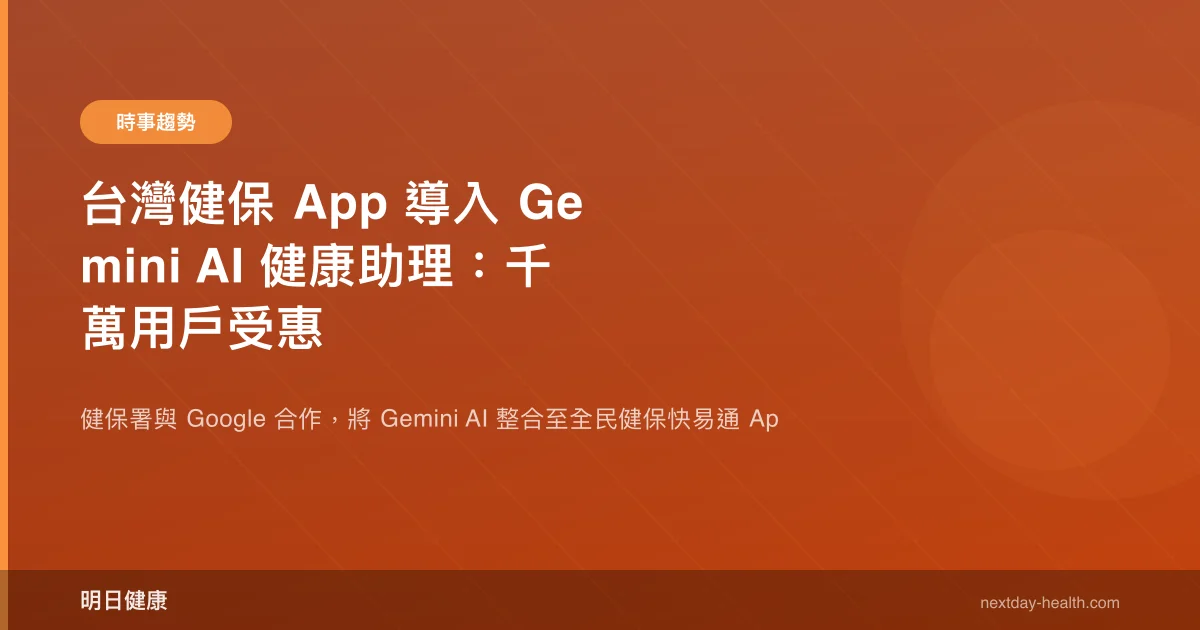 台灣衛生福利部中央健康保險署(NHIA)宣布與 Google 合作,將 Gemini AI 技術整合至「全民健保快易通」App,為超過 1,000 萬名用戶提供個人化健康洞察服務。這項合作將利用台灣健保體系累積超過 20 年的健康數據,透過 AI 分析為民眾提供健康趨勢提醒、就醫紀錄摘要與預防性健康建議。同時,Google.org 宣布撥款 100 萬美元支持台灣 300 個社區健康中心的糖尿病管理計畫。