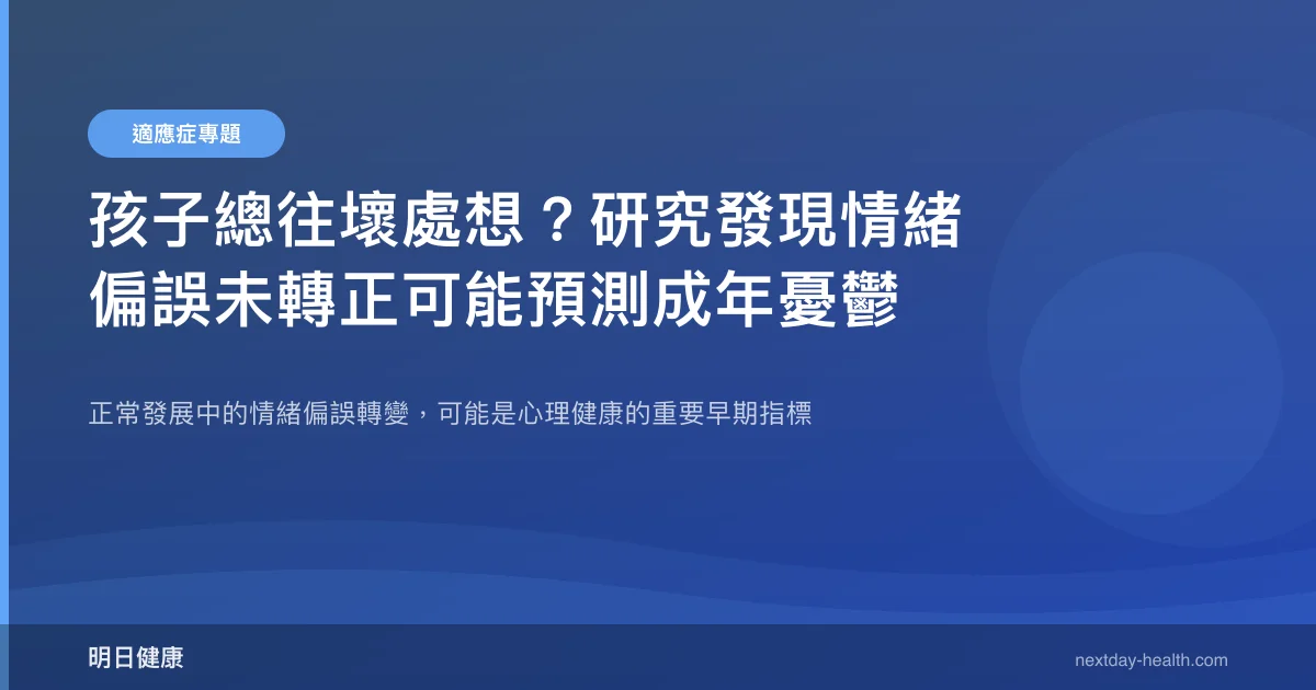 研究發現,那些持續維持負面情緒偏誤的兒童——面對模糊情境時習慣性地做出負面解讀——在後續追蹤中更可能出現憂鬱和焦慮的臨床症狀。研究者認為,情緒偏誤的轉變(或未轉變)可能反映了大腦情緒調節系統的發展狀態,有望成為識別高風險兒童的早期標記。