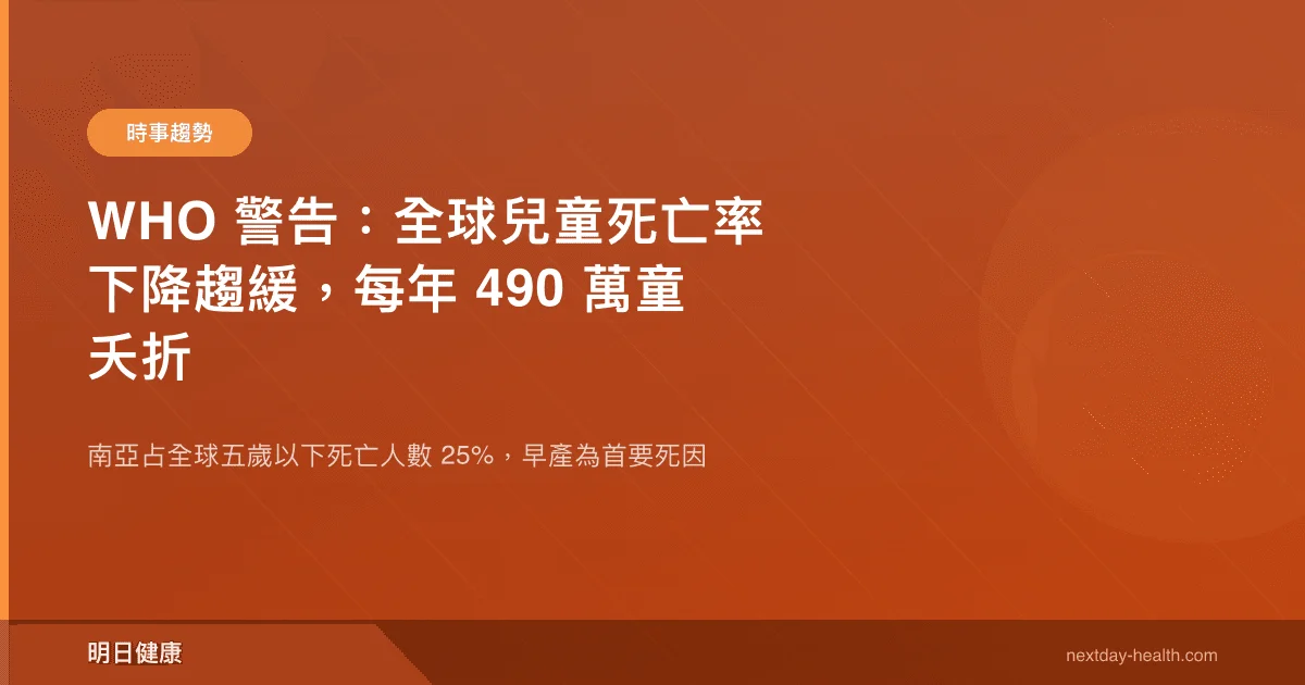 世界衛生組織(WHO)於 2026 年 3 月 18 日發布報告指出,全球在降低兒童死亡率方面的進展明顯趨緩,每年仍有約 490 萬名五歲以下兒童死亡。南亞地區占所有五歲以下死亡人數的 25%,早產及其併發症為最主要的死亡原因。