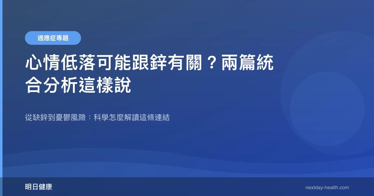 情緒持續低落、提不起勁——這種狀態有時候不只是「心理問題」,也可能反映身體的某種缺口。兩篇大型統合分析的數據指向同一個方向:鋅,這個常被忽略的微量元素,與情緒健康的關聯比多數人想像中更深。