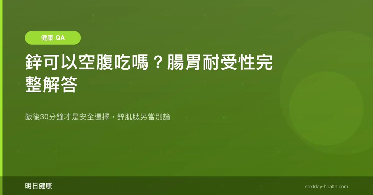 不建議。空腹吃鋅(特別是硫酸鋅)容易刺激胃黏膜,出現噁心或胃部不適;飯後 30 分鐘服用是目前最安全的方式。