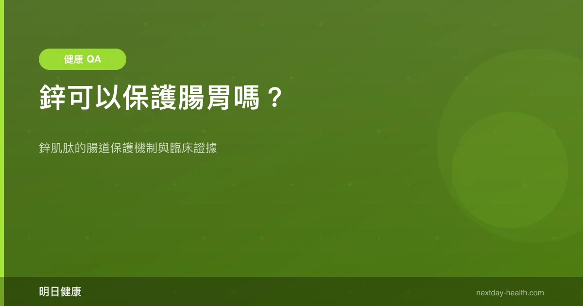 是的,鋅可以保護腸胃。研究發現,鋼肌肽能降低腸道通透性升高幅度達 3 倍,並促進胃潰瘍修復(Gut 期刊,2007)。