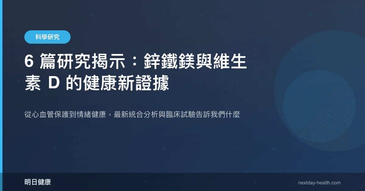 微量營養素(micronutrients)是指人體需求量雖小、卻對生理功能不可或缺的維生素與礦物質。鋅、鐵、鎂、維生素 D 與 Omega-3 脂肪酸在免疫調節、神經傳導、心血管保護及代謝平衡中扮演關鍵角色。近年多篇統合分析與臨床試驗持續更新這些營養素的證據輪廓,本文彙整 6 篇最新研究,涵蓋 A 級統合分析至 C 級觀察性研究,呈現從心血管到情緒健康的多維度發現。